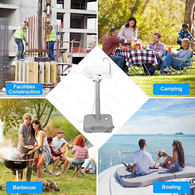 - Eco-Friendly & Durable- Made of food-safe HDPE plastic—sturdy, non-toxic & built to last. The portable sink is perfect for long-term outdoor use.