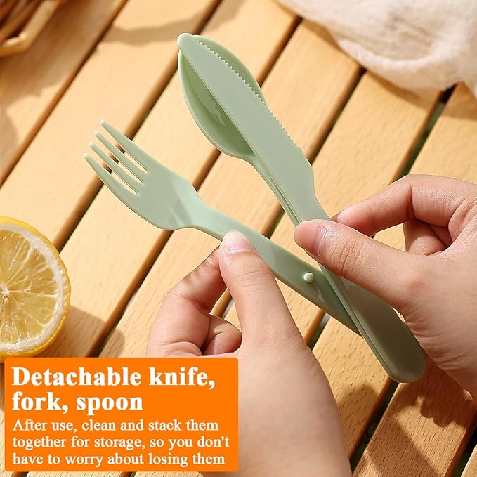 - 4. Comfortable to Use & Easy to Clean:With ergonomic handles that provide a comfortable grip, these utensils make eating outdoors a breeze. Plus, the smooth surfaces are dishwasher-safe, allowing for quick and hassle-free cleaning after every meal.