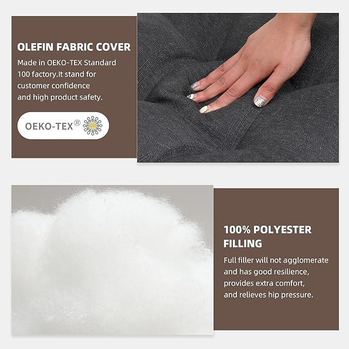 - Comfortable & Durable: RACE LEAF cushions are made of Olefin fabric cover and 100% polyester fiber filling. The cover fabric has been treated with solution-dyed to resist fading, light fastness can withstand up to 1,500 hours and still not fade. The filling is 100% polyester, will not agglomerate has good resilience, provides extra comfort, and relieves hip pressure