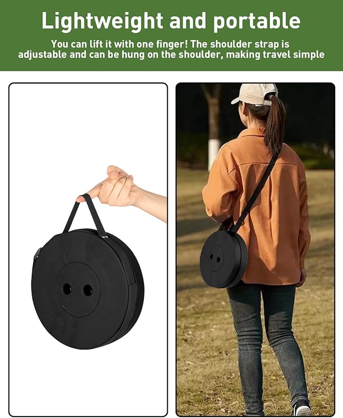 - 【Light but fold, portable travel no burden】Light to more than 2 pounds, about 2 bottles of mineral water weight, no pressure to hold.About 10 inches in diameter by 2.76 inches in thickness when folded, it can be easily tucked into a backpack, suitcase, or trunk.With a long shoulder strap, you can hang the shoulder for easy travel or shorten the shoulder strap for carrying.Hiking/music festival/commuting for a long time, no burden on the shoulders.