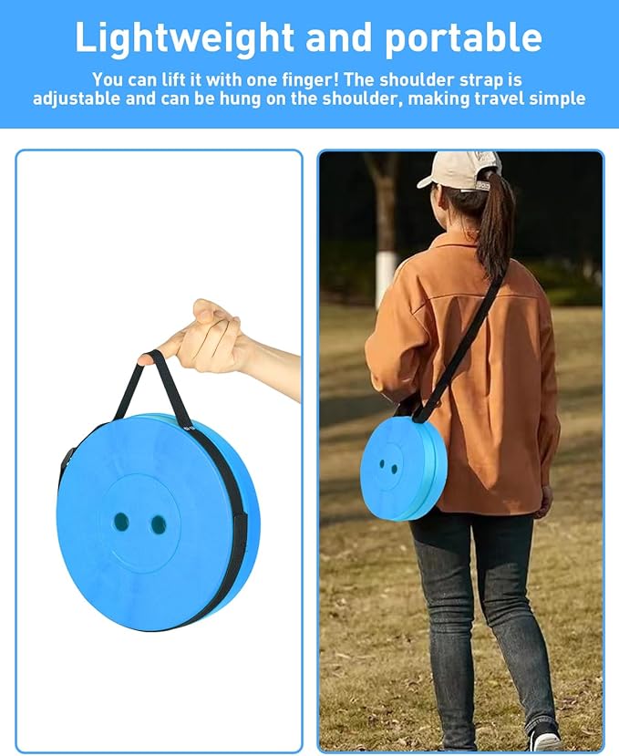 - 【Light but fold, portable travel no burden】Light to more than 2 pounds, about 2 bottles of mineral water weight, no pressure to hold.About 10 inches in diameter by 2.76 inches in thickness when folded, it can be easily tucked into a backpack, suitcase, or trunk.With a long shoulder strap, you can hang the shoulder for easy travel or shorten the shoulder strap for carrying.Hiking/music festival/commuting for a long time, no burden on the shoulders.