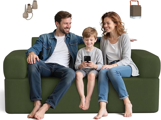- HIGHER DURABILITY AND AIR RETENTION: Crafted with abrasion-resistant 1000D Oxford fabric, the blow up couch outer layer maintains firm support, resists air loss, and repels stains and fading. Engineered for easy cleanup and long-lasting performance
