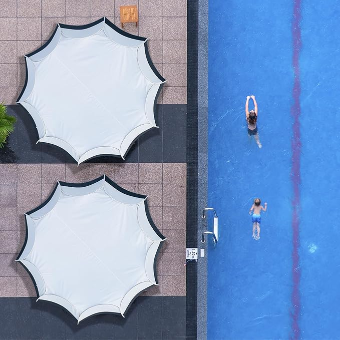 - ☀Patent pending design: fabric top provides all-day UPF 50+ UV protection against burning sun, not waterproof & not rainproof. Two large entrance doors with double side silicone zippers, easy to zip from inside and outside alike. 10 mesh netting screen walls protect your family and food. Extra hooks for your coat, bag or something else. 10 elongated sandbags, 20 guylines and 20 metal mounting stakes, provide extra stability in windy conditions.