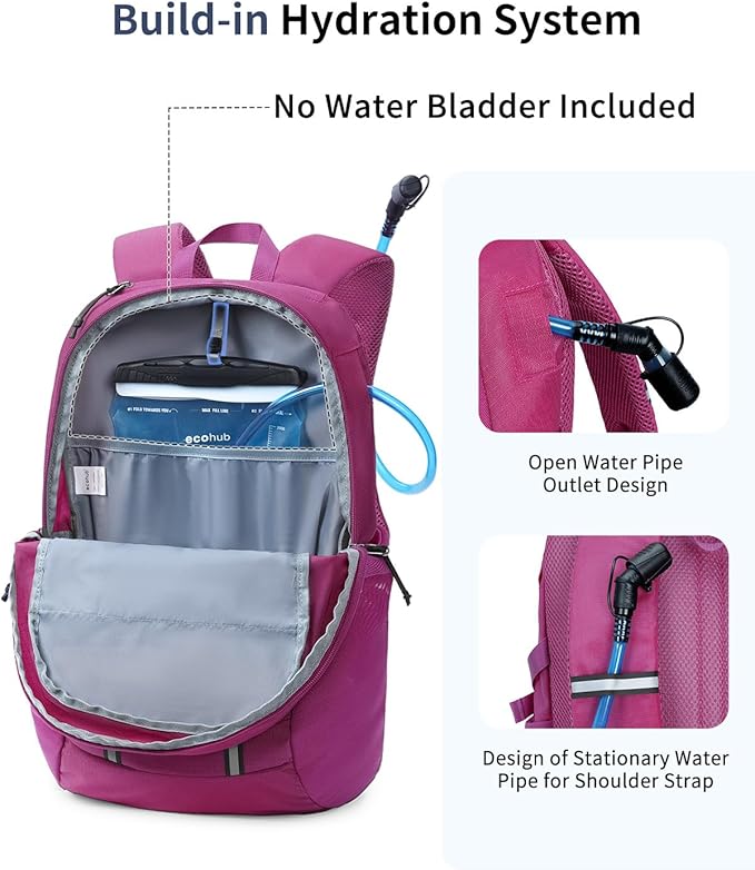 - 【Inner and Outer Connection Design】 Backpack has hooks inside the main compartment to hold the hydration bladder, and the straw exits from the right side exit of the backpack. Regarding this exit, you can also use it as a USB cable exit. This will better energize you or your electronic devices while in hiking , traveling, camping and so on (No Water Bladder Included)