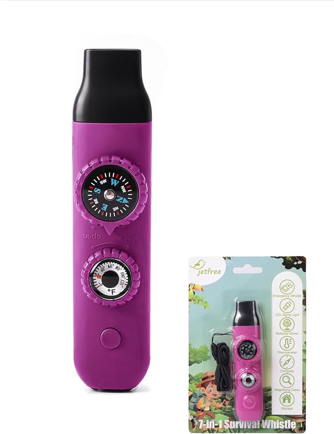 Multifunctional Survival Emergency Whistle for Kids with Compass Hiking Survival, Thermometer & Neck Lanyard | Emergency Safety Gear for Hiking, Camping, Kayaking, Boating, Climbing