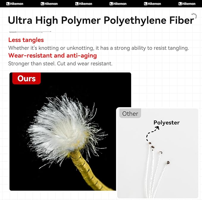 - 【EXTREMELY LIGHTWEIGHT】This windproof rope is crafted from UHMWPE fiber material, making it exceptionally lightweight—weighing just 3g(0.1OZ) per meter on average—to minimize the load on your journey as much as possible