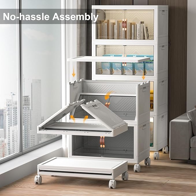 - 【Smooth Mobility with Locking Wheels】: Easily move your storage wherever you need it. These stackable storage bins with wheels feature four smooth-rolling casters, including two locking brakes, keeping your bins stable yet mobile — great for bedrooms, dorms, or offices.
