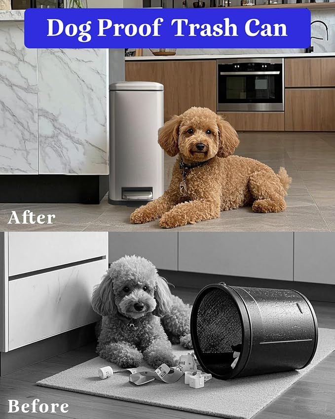 • Pet-Proof & Soft Close Lid:Tall trash can with lid ensuring a smooth and quiet closing every time. This step trash can is perfect for families with small children or pets.Dog proof trash can also prevents pets from tipping over and stays open for convenient use.