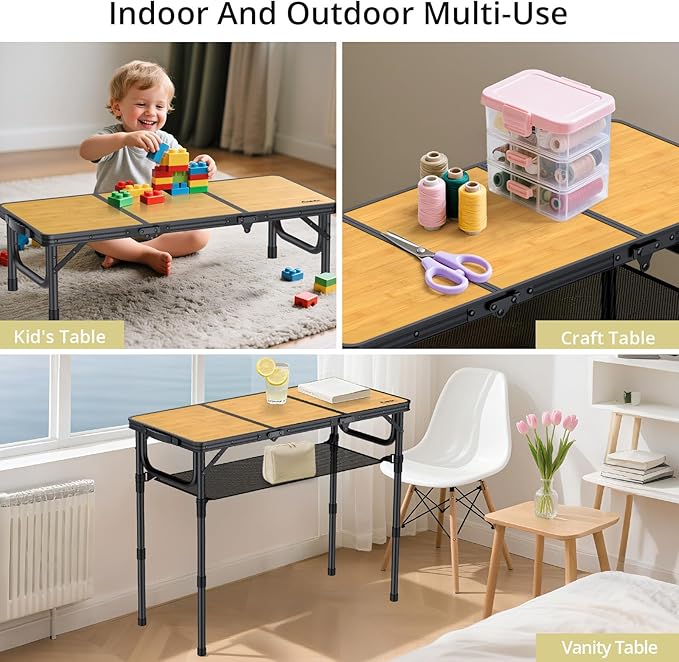 - Convenient Storage Net for Extra Space: An unique capacious storage mesh can be assembled underneath the tabletop to provide more space and hold more stuffs for you. This is useful to keep some lightweight and small items off the ground