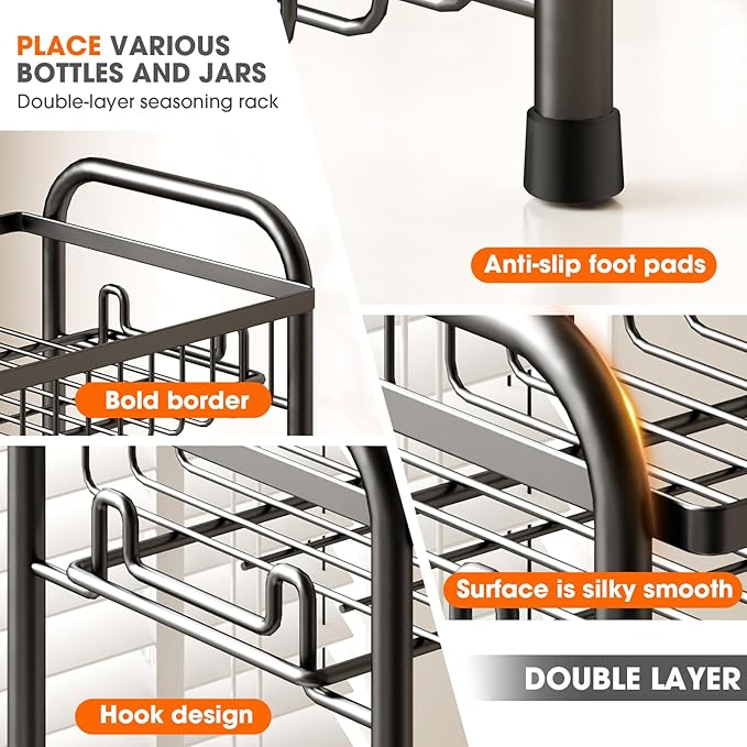 - Sturdy Metal Spice Rack: Rust-proof & waterproof metal construction ensures long-lasting durability. Holds spices securely while resisting moisture & daily wear