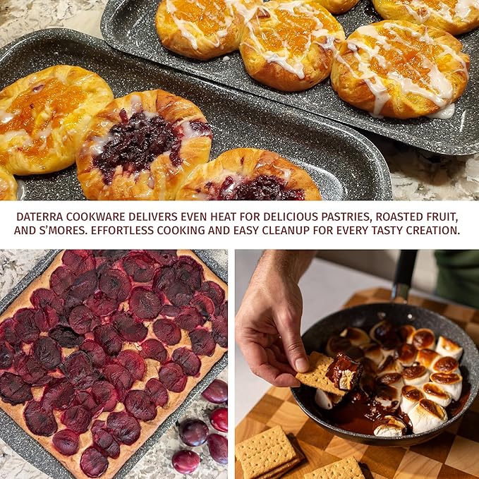 - ITALIAN CRAFTSMANSHIP MEETS EVERYDAY FUNCTION: Combining sleek volcanic black speckled design with practical features like a cool-touch handle and easy-clean surfaces, this bundle brings elevated performance to home kitchens. Whether cooking solo or for family, DaTerra Cucina delivers reliable, stylish kitchen pans that work.
