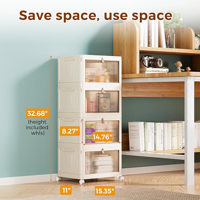 - Large Capacity & Upgraded Material - The storage bins measure 14.76 x 11 x 8.27 inches(23 QT capacity) on each floor, and the 4-layer stacked as a whole measures 15.35 x 11 x 32.68 in (height included wheels), with a total capacity of 92 QT. Our storage containers with lids are made of high-quality PP materials for long service life