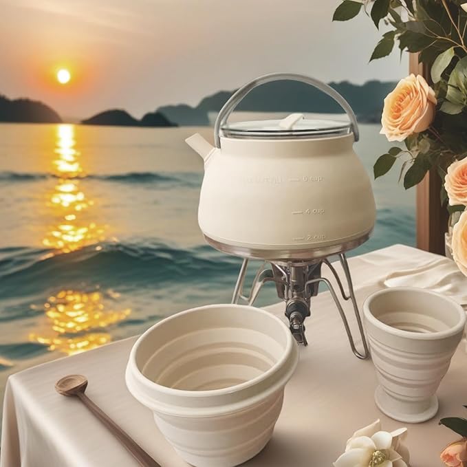 - SPACE-SAVING DESIGN: Silicone construction allows kettle and cups to collapse flat for compact storage and easy transport, weighing only 448g total