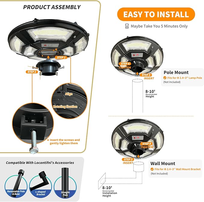 - Uniquely Dual-Powered Options: Ordinary solar lamp post lights can't operate effectively without sunlight. Locontifni had upgraded to a new charging solution—a DC charging port. When sunlight is abundant, the outdoor light can be powered by solar energy for daily charging. During winter or extended cloudy periods, use the included plug to keep it charged and working easily. With dual charging options and strong waterproof performance, the Locontifni solar light for outside can provide reliable outdoor lighting for streets, yards, gardens, patios, porches, and parking lots in all seasons and climates
