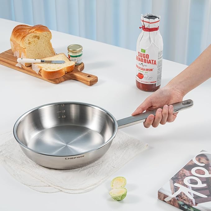 8.6-Inch 316 Stainless Steel Frying Pan, 5-Ply Stainless Steel Saute pan, Deep Skillet, Induction Compatible, Dishwasher & Oven Safe