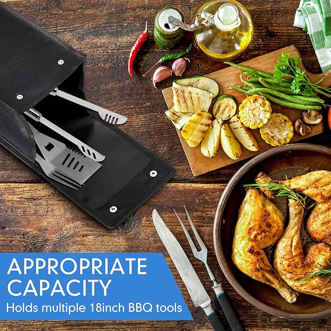 - Large Capacity: the BBQ tools carry bag measures approx. 24.5 x 9.5 x 8 inches and 20 x 6 x 6 inches, proper in size and light in weight, which can hold most barbecue tools