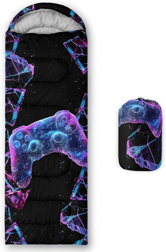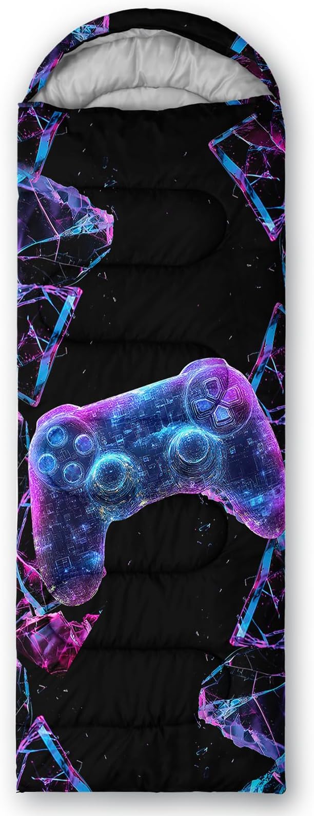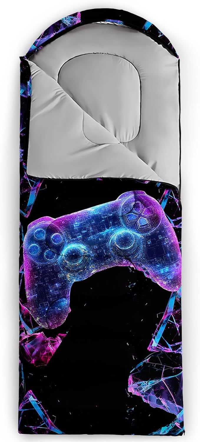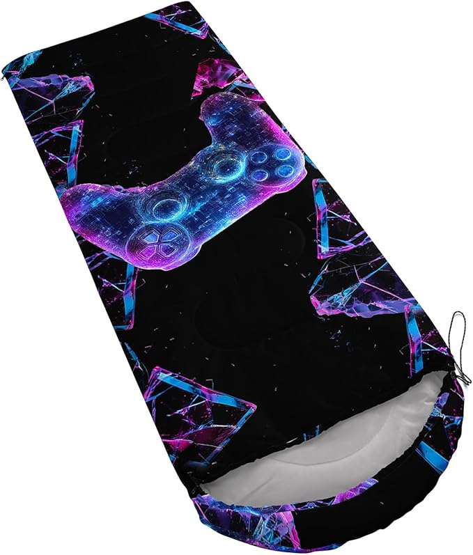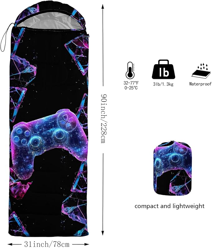 - Unique Game Design:This Game pattern sleeping bag is made of 3D digital printing with vibrant colors and patterns,size: 31W x 90L inches,temperature range: 32℉-77℉ (0℃-25℃),it also also have a weather resistant waterproof design to keep you warm and prevent you from any dampness,can be used in 3 seasons