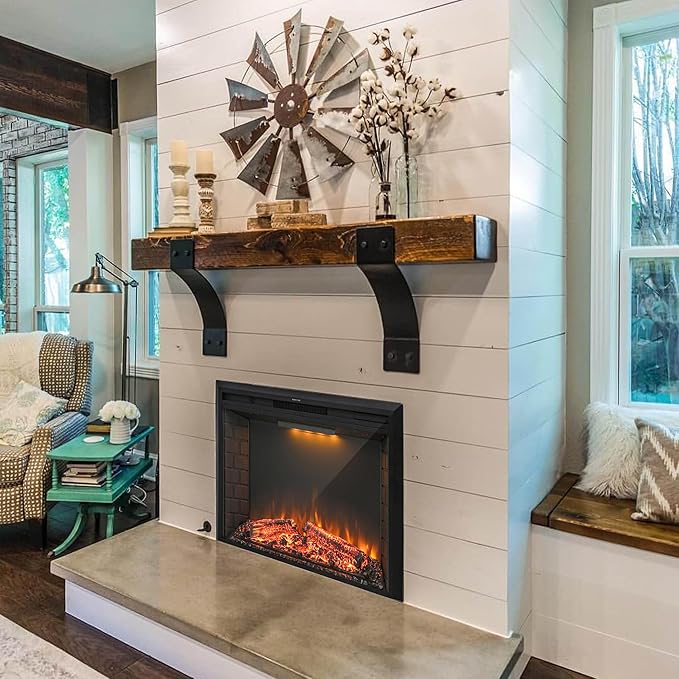 - INSERT INSTALLATION: Overall dimension: 25.35"L X 8.84"D X 21.1"H; Insert dimension: 22.3''-25"L X 8.5"D atleast X 19.9''-20.7"H, the electric fireplace insert provides supplemental heat for room up to 400 sq.ft; 5000 BTU; 6ft power cable; Use 120V AC.