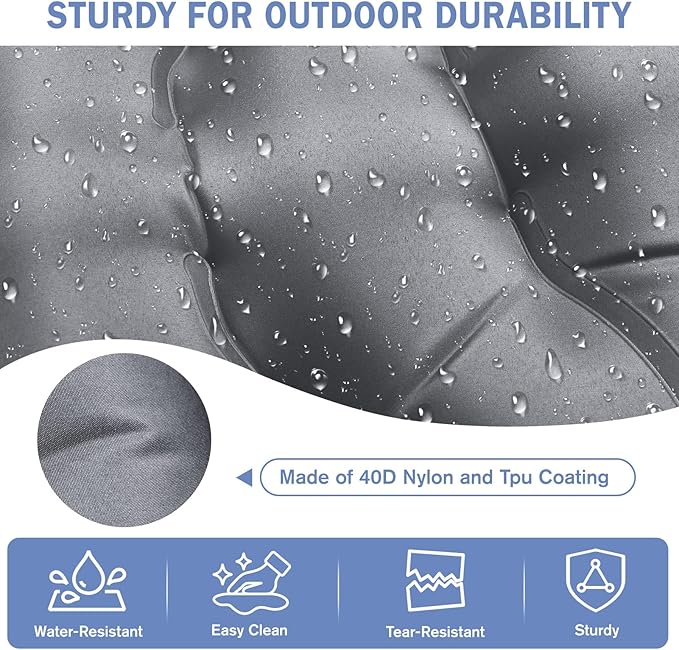 - Outdoor-Grade Materials for Durability: Made of newly upgraded 50D nylon fabric with a TPU sealed coating, this camping mattress pad is tear-resistant, low-noise, water-resistant, and easy to clean. It can withstand pressure from hard objects like keys and branches. Good durability ensures that this camping sleeping pad can be used in a variety of outdoor environments.