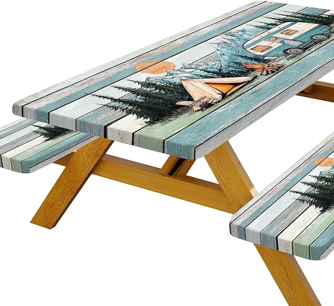 - Secure Elastic-Fit Design for Table & Benches:Features all-around elastic hems for a super-snug, wrinkle-free fit on standard rectangle picnic tables . Bench covers stay anchored during use – essential for active outdoor dining.
