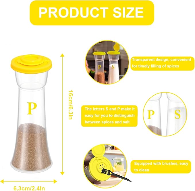 - Food-Safe & Effortless Cleaning-Crafted from premium BPA-free, these shakers are fully dishwasher-safe for quick cleanup. Designed to withstand daily use without retaining stains or odors, ensuring safe storage for all your spices and seasonings.