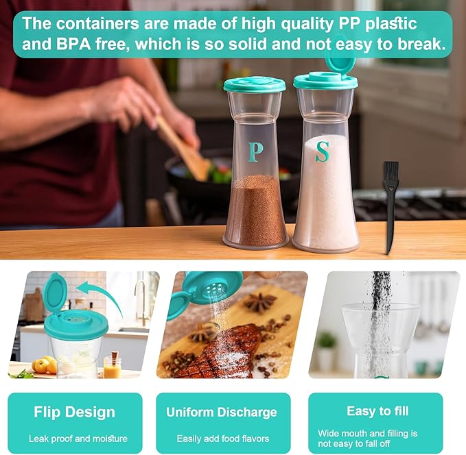 - Leak-Proof & Airtight Freshness-Keep spices dry and clump-free with our spill-proof, airtight seal design. Perfect for kitchens, camping trips, or picnics—these shakers lock in flavor and prevent messy spills.