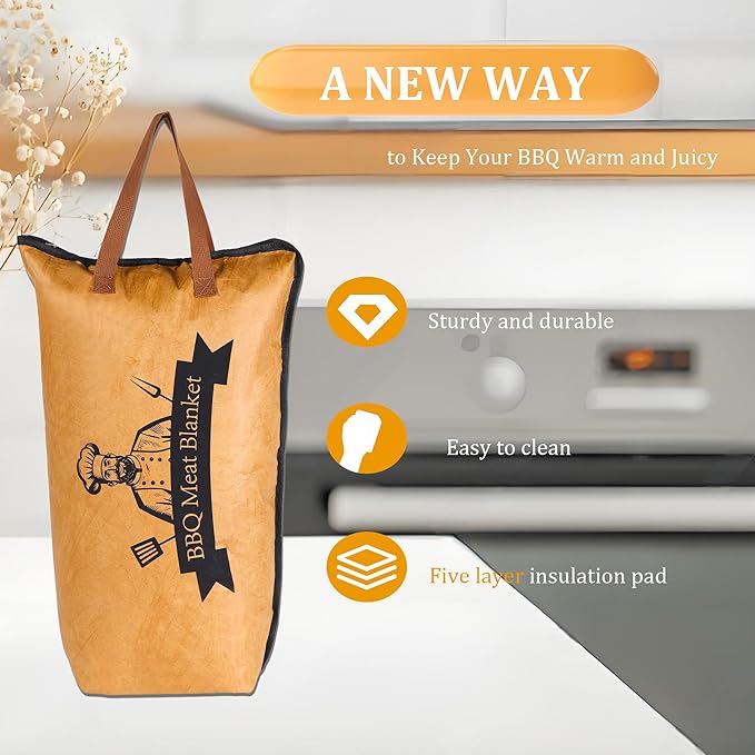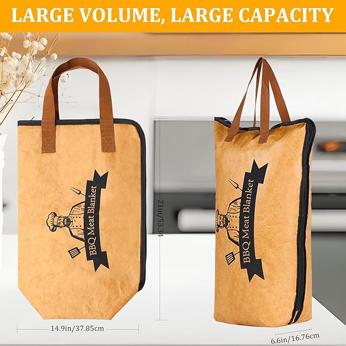 - IDEAL FOR ALL MEATY CREATIONS: At 21"" L x 14.9"" W x 6.6"", this BBQ resting blanket fits large cuts—brisket, turkey, pork shoulder. Perfect for backyard barbecues, picnics, camping—your go-to for every grilling adventure.