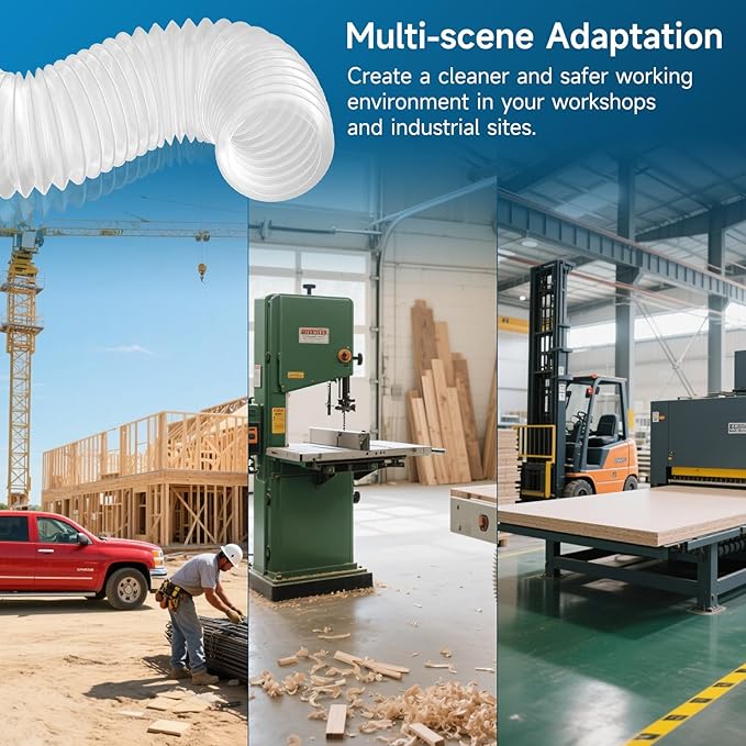 - Premium PVC: Hon&Guan dust collection hose uses edible-grade PVC, harmless, odorless. Strong puncture resistance withstands dust/debris. Transparent design allows checking internal debris for timely cleaning, preventing clogs and boosting safety