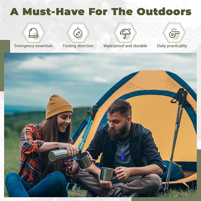 - Mutile Application: suitable for coaches, athletes, teachers, and other person; You can wear this 2 in 1 function whistles with compass to participate in various activities, such as camping, hiking, running, racing, cycling, skiing and other outdoor activities