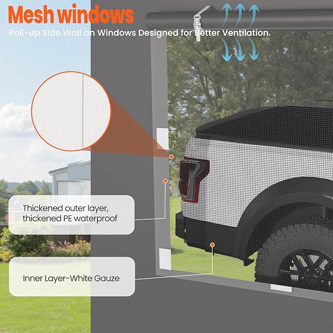 - 【Easy installation & disassembly】Our portable car tent comes with installation instructions, making it easy to assemble without requiring too much time and effort. Spring buckles and elastic ball components make installation and disassembly a breeze.
