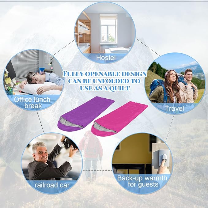 - Suitable for 4 Seasons and Warm or Cold Weather: our adult sleeping bags can keep warm in various outdoor activities in spring, summer, autumn, and winter; They are weather resistant design to keep you warm even in extreme conditions and prevent you from any dampness, you can get the comfortable sleep you need after a day of adventurous outdoor camping, backpacking, hiking, or travel