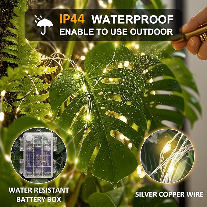 - [VERSATILE & DURABLE DESIGN FOR NON-STOP CREATIVITY]: Bend & shape our premium copper wire fairy lights with clips—no breakage! Sturdy clips grip photos without damage. With an IP44 weather-resistant rating, they survive rainy patios or kids’ rooms. Unlike flimsy lights, our optimized clip spacing (22 for 50LED / 45 for 100LED) means less repositioning and more time enjoying your memory wall.