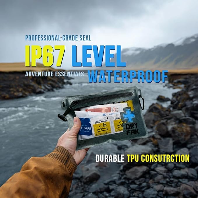 - Must-Have Essential for Every Outdoor Adventure: Whether you're hiking rugged trails, paddling downriver, this compact waterproof first aid kit is built to keep you prepared. Trusted by backpackers, it’s the perfect first aid kit for hiking, backpacking, kayaking, fishing, or biking. This personal first aid kit weighs next to nothing but delivers serious peace of mind. Ideal as a hiking medical kit, bike first aid kit, backpack first aid kit, or even a boat emergency kit.