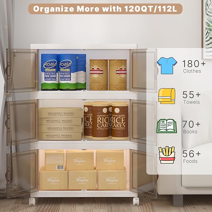 Extra Large Stackable Storage Binswith lids & Wheels, Foldable Collapsible Closet Organizers,720QT-120QT/30GAL*6Pack Plastic Containers with door & drawers for bedroom Dorm