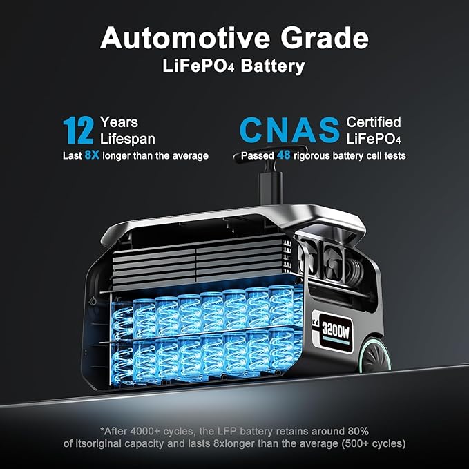 - 【Top-grade LiFePO4 Battery】Portable electric generator built-in battery uses a lithium iron phosphate battery (LiFePO4) that lasts 15 years with over 4000 charge/discharge cycles. It lasts 7 times longer than conventional batteries and costs less. IEE solar generators for home use also has a battery management system (BMS) to manage battery cell voltage and temperature.