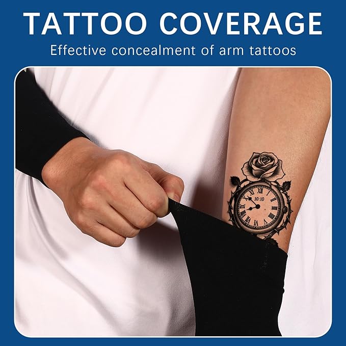 - 【Tattoo Coverage】:Using a skin-friendly and sweat-absorbing fabric, when covering the arms, it can naturally fit snugly, ingeniously concealing the tattoo marks without disrupting the professional appearance of the overall outfit. The fabric's inherent properties of breathability and heat dissipation keep the skin constantly dry. During exercise or work, it also maintains the professional image