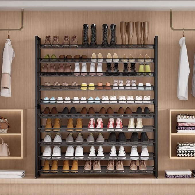 Metal Shoe Rack,Large 10 Tier Shoe Organizer, Heavy Duty Metal 5-Tier Stackable Shoe Storage Vertical Shoe Rack for Closet Front Door Entrance,Entryway,GarageUp to 62 Pairs,Black