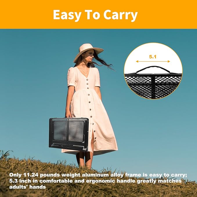 - Heat & Waterproof TOP - Moosinily portable grill table, with 1.6mm steel mesh top covered by powder painting, perform well no matter in heat or in water. The eage of the steel mesh has been polished so it would not be sharp for hands. The thicker 1050A aluminum alloy frame with diameter 25mm is lightweight, anti-corrosion and rust resistant which can use for most outdoor scenes in several year. Thickened Support Rods and the tabletop support rod keep the table stable, this folding camping table has a load capacity of 100 lbs and the table extension board has a load capacity of 30 lbs (evenly distributed)