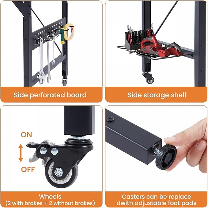 - 30-Min Tool-Free Assembly: KYDEVO adjustable workbench comes with a detailed assembly guide and clear signage so you won't struggle to assemble it, and it features four wheels for easy mobility, allowing you to move the table around your workspace with ease or conveniently store it when not in use.