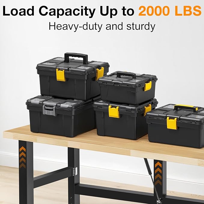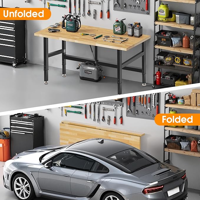 48” Folding Workbench, 2000 LBS Capacity Heavy Duty Workbench, Height Adjustable Foldable Work Table, Rubberwood Collapsible Desk for Workshop, Garage, Office, Home