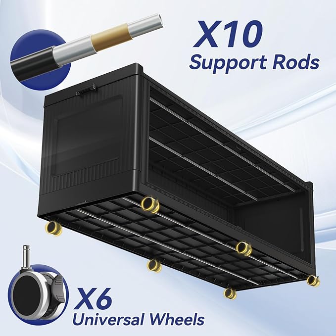 - 【8x Support Rods & 6x Rotating Wheels】Each 3-layer storage cabinet has 4x2 full metal support rods embedded in the bottom and lid. The more heavy-duty foldable storage bins can bear up to 180-220lb, far exceeding other fragile plastic folding storage bins. The wheeled storage bins design with 6x 360-degree rotating wheels, allowing for easy movement.WARNING : CHOKING HAZARD-small parts. Not for children under 36 moths.