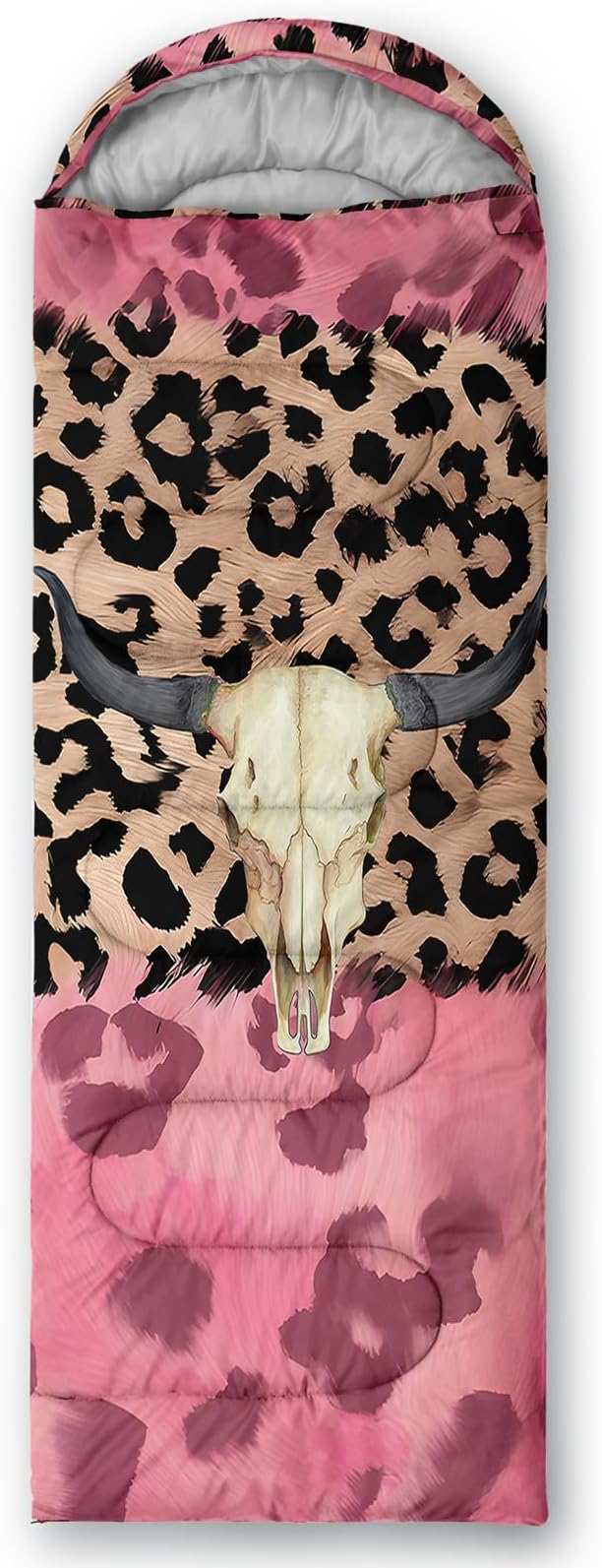 - Unique Bull Skull Design:This Bull Skull pattern sleeping bag is made of 3D digital printing with vibrant colors and patterns,size: 31W x 90L inches,temperature range: 32℉-77℉ (0℃-25℃),it also also have a weather resistant waterproof design to keep you warm and prevent you from any dampness,can be used in 3 seasons