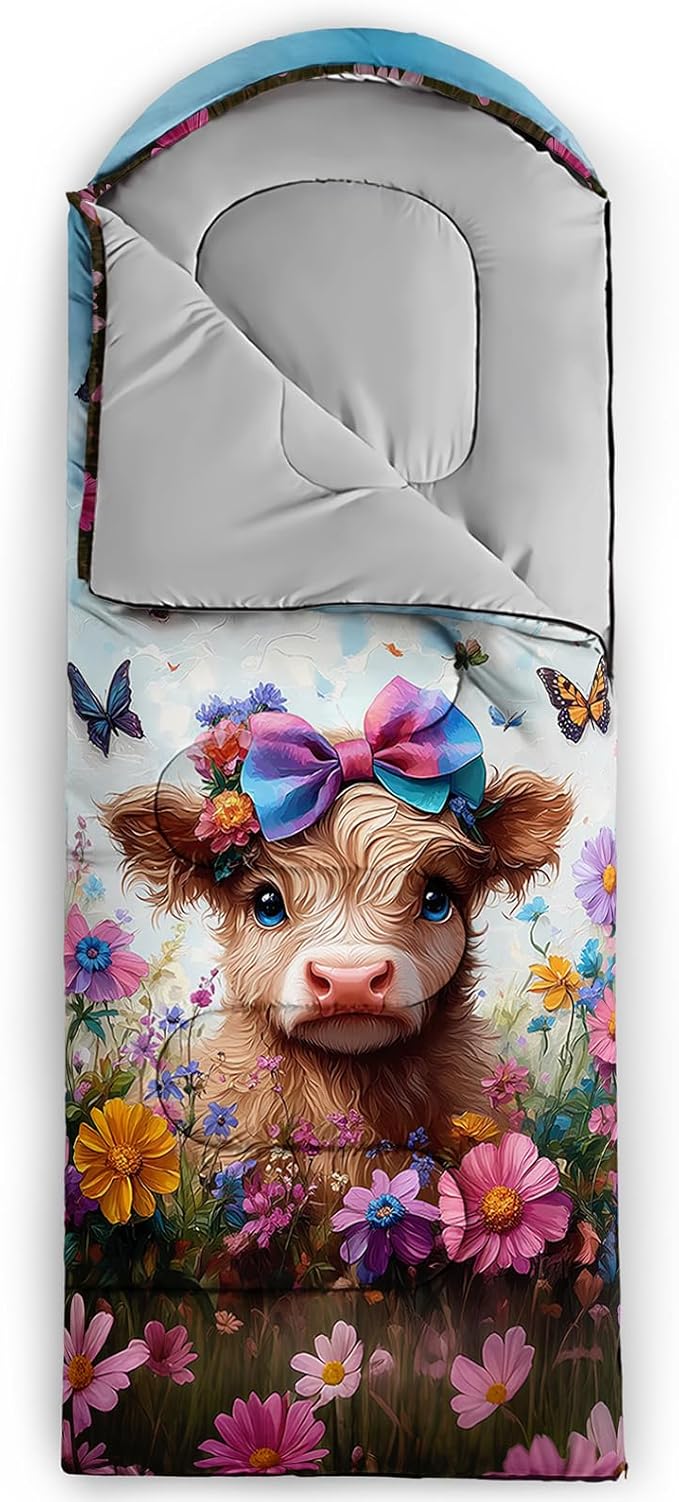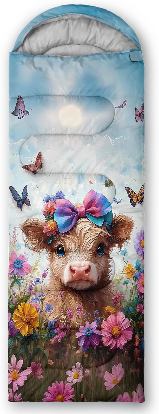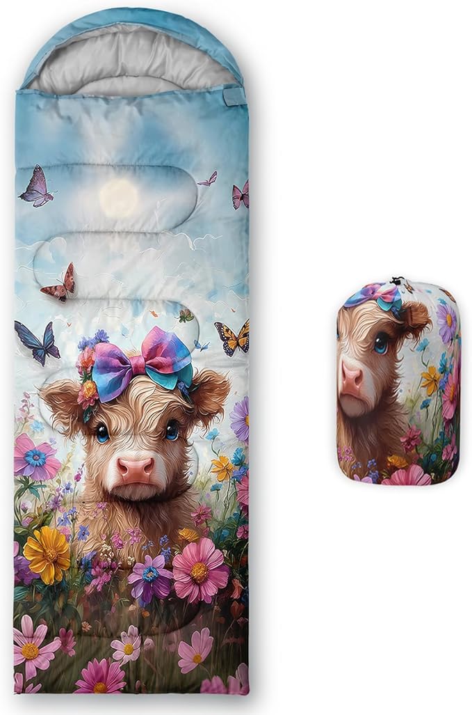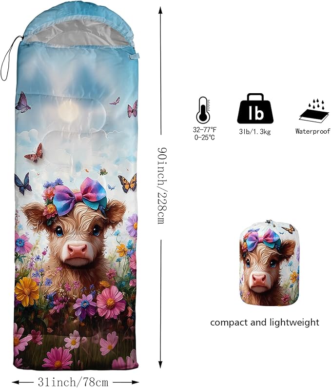 - Unique Yak Design:This Yak pattern sleeping bag is made of 3D digital printing with vibrant colors and patterns,size: 31W x 90L inches,temperature range: 32℉-77℉ (0℃-25℃),it also also have a weather resistant waterproof design to keep you warm and prevent you from any dampness,can be used in 3 seasons