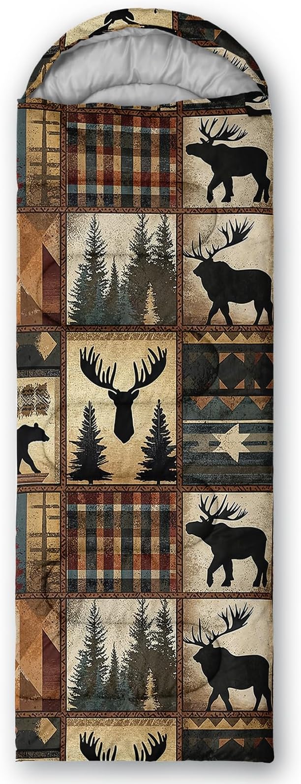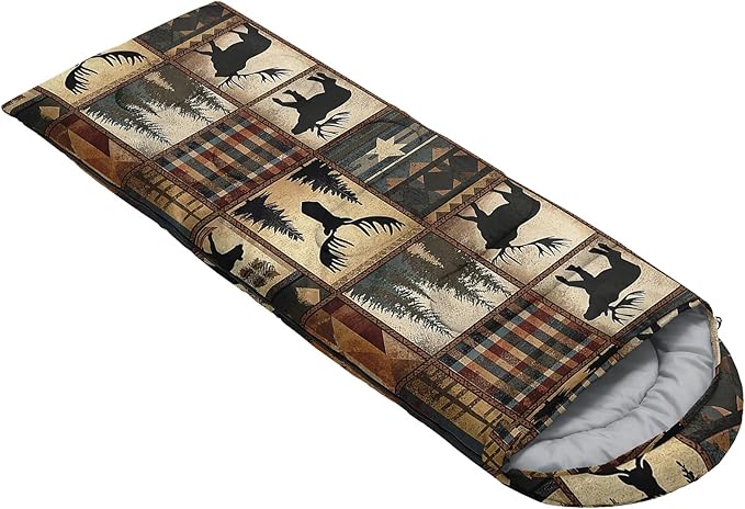 - Unique Deer Design:This Deer pattern sleeping bag is made of 3D digital printing with vibrant colors and patterns,size: 31W x 90L inches,temperature range: 32℉-77℉ (0℃-25℃),it also also have a weather resistant waterproof design to keep you warm and prevent you from any dampness,can be used in 3 seasons