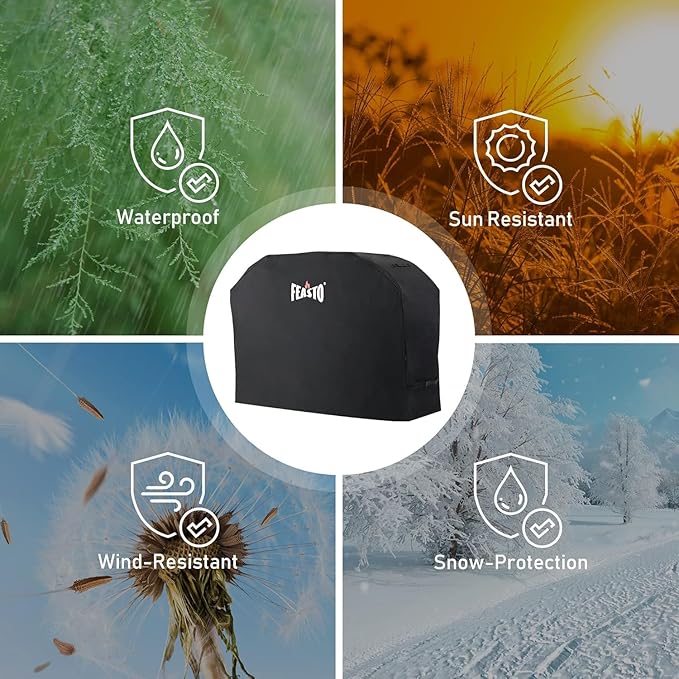 - Waterproof & Anti-UV & Fade Resistant Cover: The heavy duty durable oxford cloth with PVC coated lining material allows the grill cover to be used all year round in the yard, waterproof, sun resistant, wind resistant and snow protection.