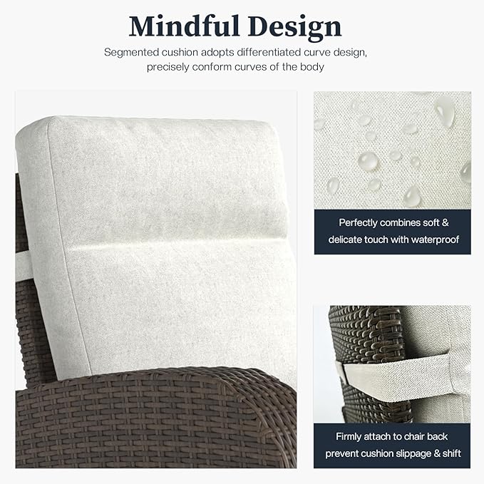 - EXCELLENT HANDCRAFTED PE RATTAN: For a truly high-end outdoor recliner chair, we use premium all-weather PE rattan, processed through professional hand weaving techniques. They have multiple advantages such as quick drying, long-lasting effect and color fixation. The exquisite wicker texture attests to its quality.