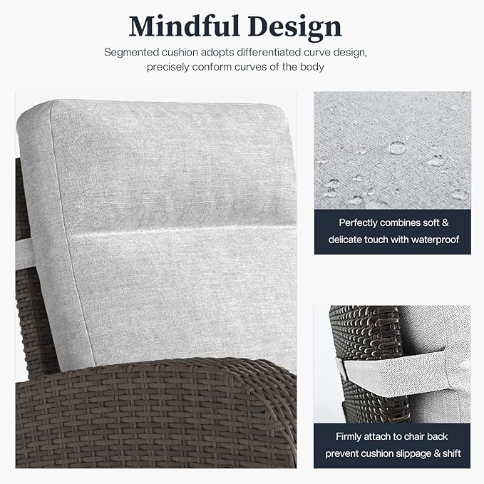 - EXCELLENT HANDCRAFTED PE RATTAN: For a truly high-end outdoor recliner chair, we use premium all-weather PE rattan, processed through professional hand weaving techniques. They have multiple advantages such as quick drying, long-lasting effect and color fixation. The exquisite wicker texture attests to its quality.